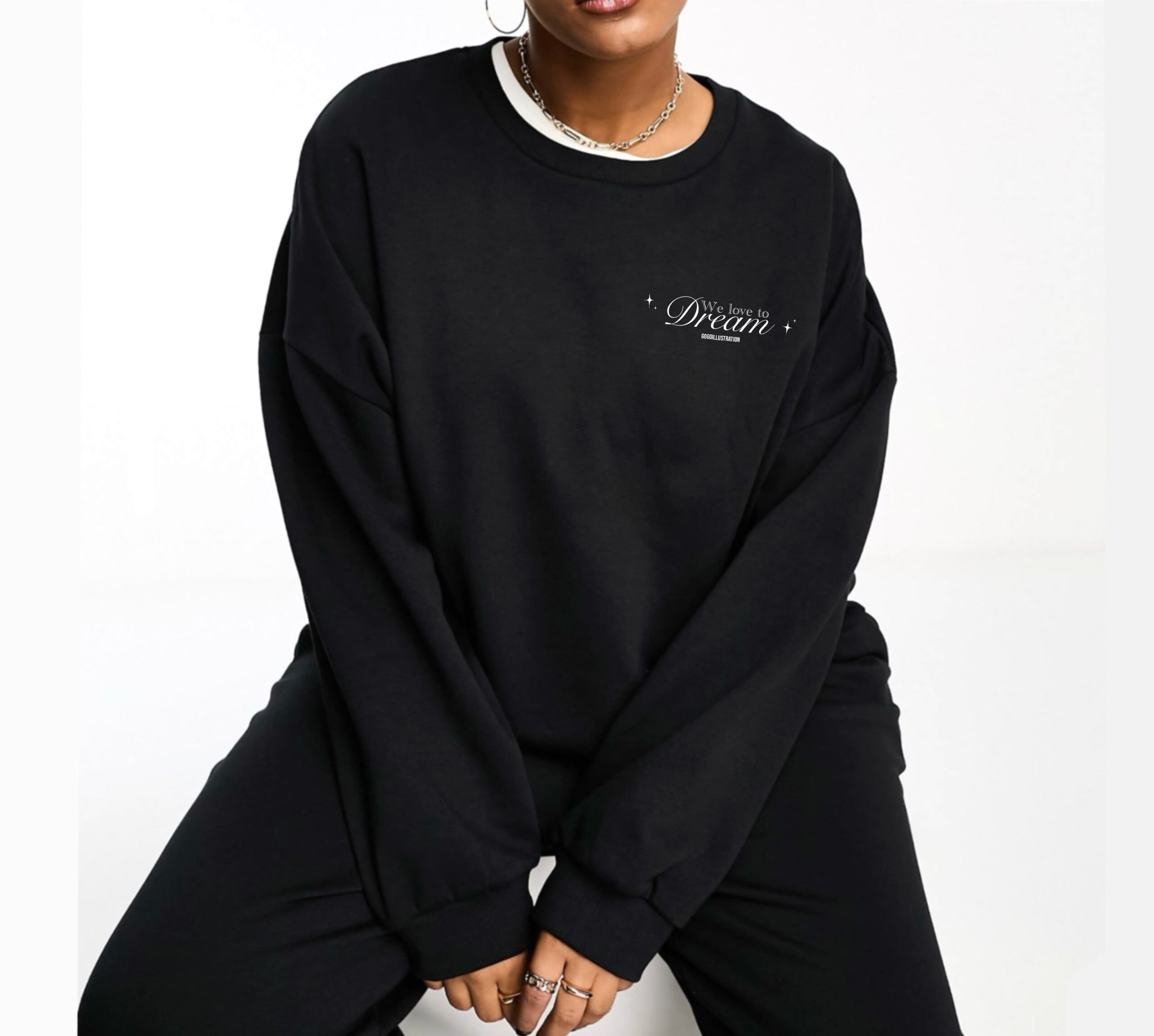 Sudadera negra/blanca extragrande , con cuello, puños y cinturilla de punto en canalé. Diseño estampado original GOGO.
