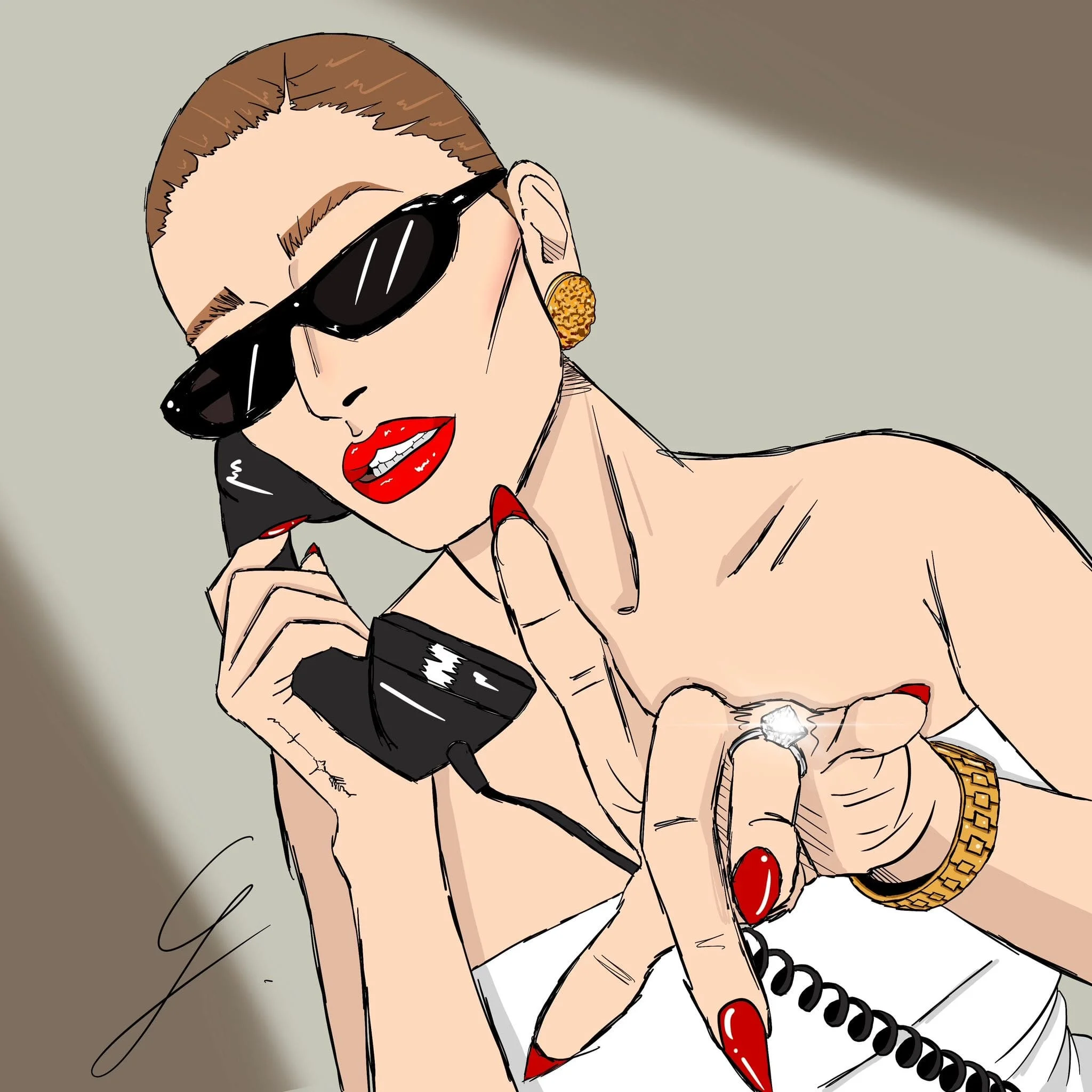 La obra digital «Wait I’m Hailey Bieber» de Gonzalo Sánchez captura la esencia de la sofisticación y el glamour. Inspirada en Hailey Bieber, ícono de poder y elegancia, esta pieza única presenta una figura femenina con una imagen impecable que irradia misterio y distinción.